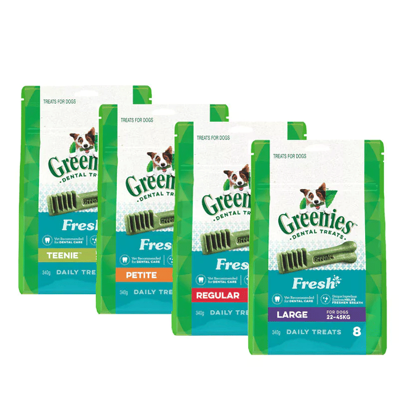 Give your dog a fresh breath and a healthy smile with Greenies Fresh Mint Dental Dog Treats, vet-recommended and VOHC-accepted for effective plaque and tartar reduction.