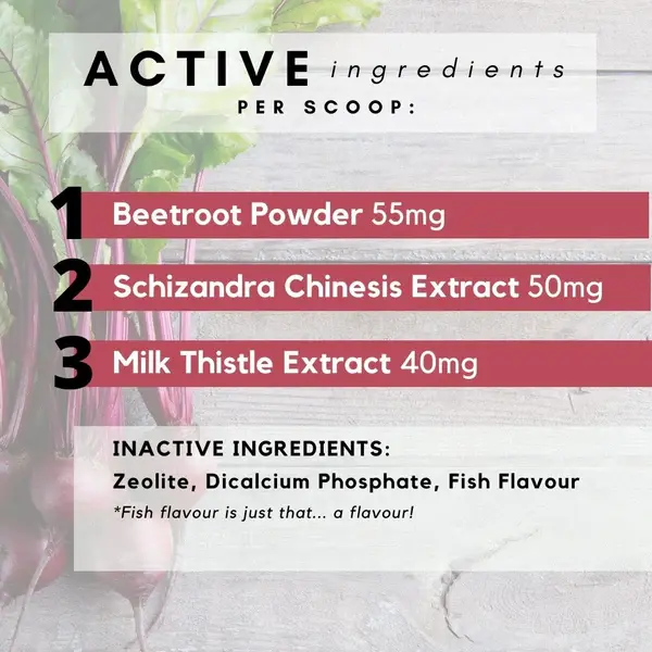 Boost your cat's liver health with PetzPark's natural support powder, a fish-flavored formula packed with milk thistle and beetroot to enhance detoxification and vitality.