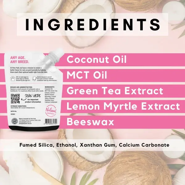 Transform your cat's dental care routine with PetzPark Cat Toothpaste, a delicious coconut oil and lemon myrtle gel that fights plaque and freshens breath for all ages.