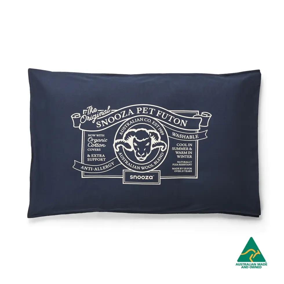 Treat your furry friend to the ultimate comfort with our Adorable Organic Pet Futon, crafted from luxurious Australian wool and organic cotton, featuring a stylish, machine-washable blue cover and eco-friendly fill for sustainable snuggles.